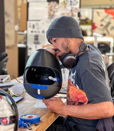 Devaughn Marcelle is a San Francisco-based artist, photographer, and industrial designer with a diverse background. Born in San Jose, he discovered his passion for aviation during childhood visits to nearby Moffett Field. This early interest led him to enlist in the United States Navy, where he honed his hands-on skills and critical thinking while working on aircraft such as the F/A-18 Super Hornet and F-35 Lightning II.